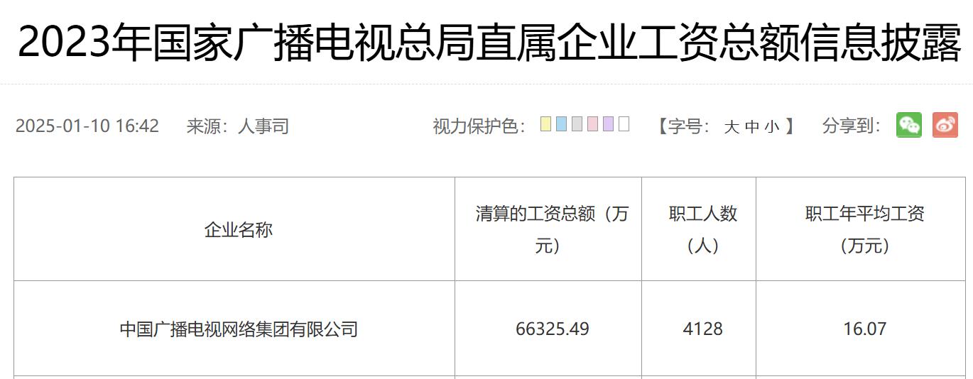 近日,中國廣電首次通過其官網(wǎng)主動披露2024年度工資總額信息。數(shù)據(jù)顯示,2024年中國廣電職工年平均工資為17.13萬元,較2023年的16.07萬元上漲6.6%。